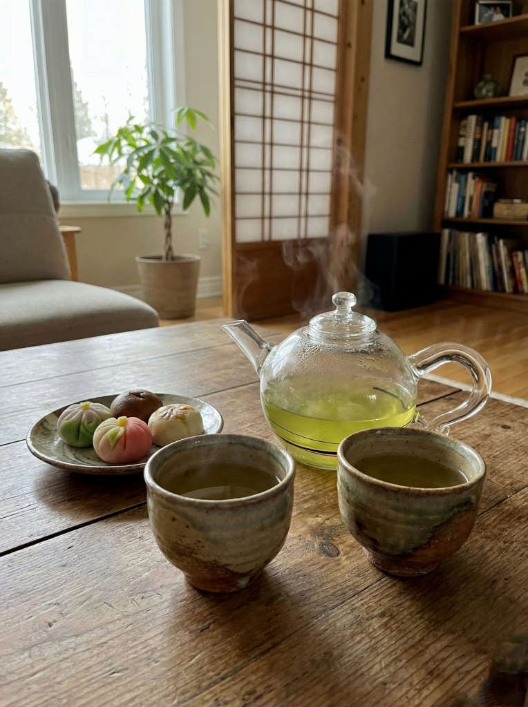 お茶と和菓子を楽しむ ※和菓子用のお皿もあります