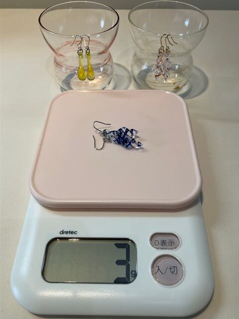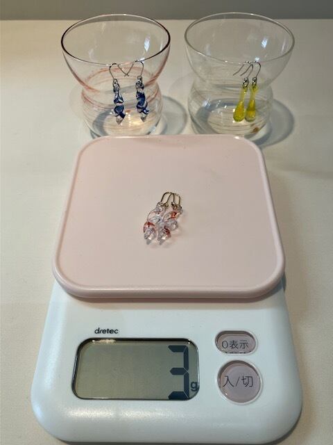 ①ガラスのアクセサリーにしては軽い 3g