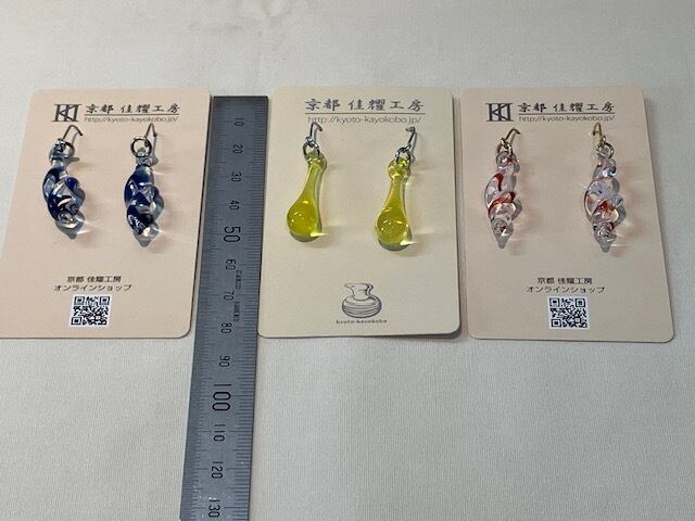 京都で100年近く続く耐熱ガラスの技術を継承する「佳耀工房」が、一つひとつ炎の中で形作った、世界に一つだけのアクセサリーです。