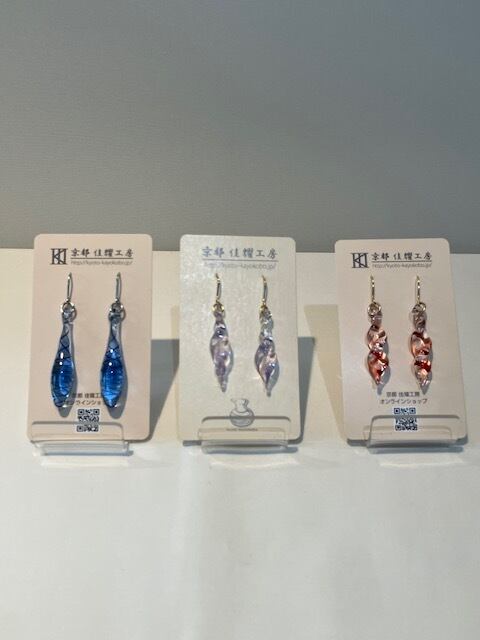 京都で100年近く続く耐熱ガラスの技術を継承する「佳耀工房」が、一つひとつ炎の中で形作った、世界に一つだけのアクセサリーです。