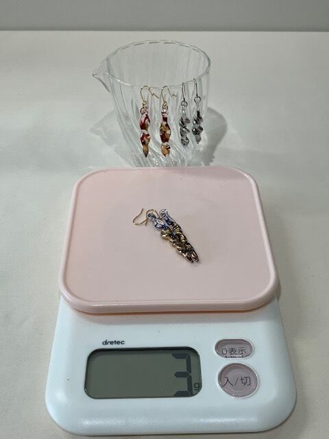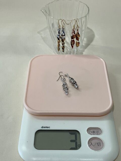 ①ガラスのアクセサリーにしては軽い 3~4gが多い
