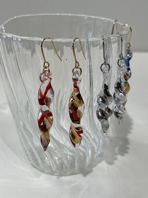 京都・佳耀工房|ボロシリケイトガラスのピアス ワンポイント金彩又は白金入り「ブルー・ルビー・ホワイト」(送料無料)タイプB 夏にぴったり ガラスアクセサリー