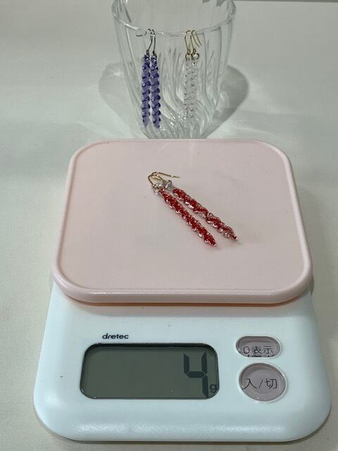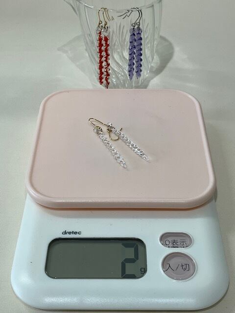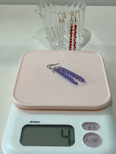 ①ガラスのアクセサリーにしては軽い 3~4gが多い