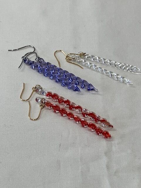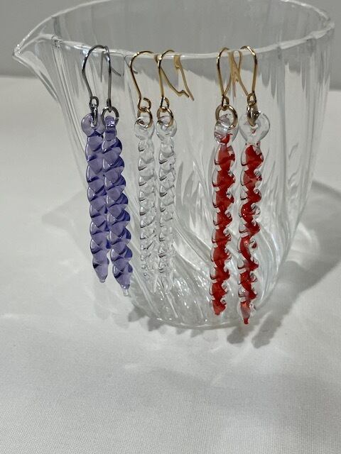 京都・佳耀工房|ボロシリケイトガラスのピアス ロングねじねじ「クリア・パープル・レッド」(送料無料)タイプB 夏にぴったり ガラスアクセサリー