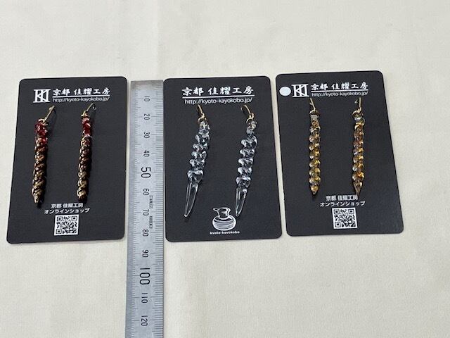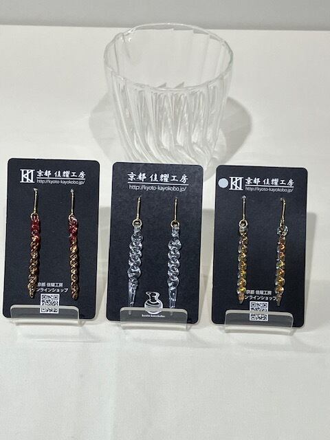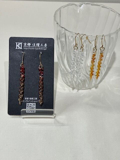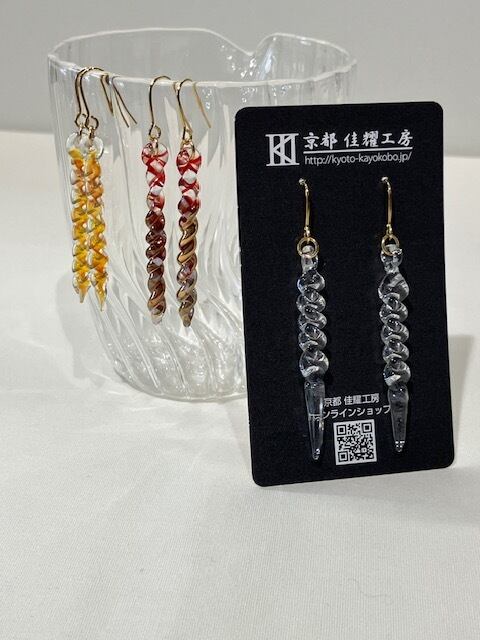 京都で100年近く続く耐熱ガラスの技術を継承する「佳耀工房」が、一つひとつ炎の中で形作った、世界に一つだけのアクセサリーです。