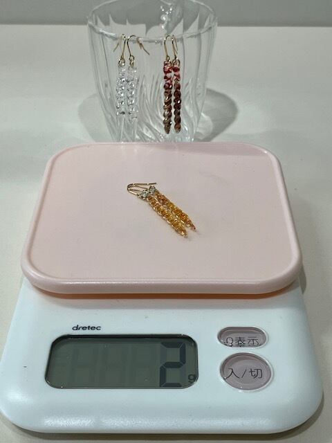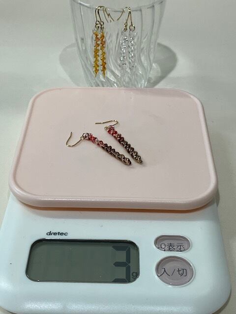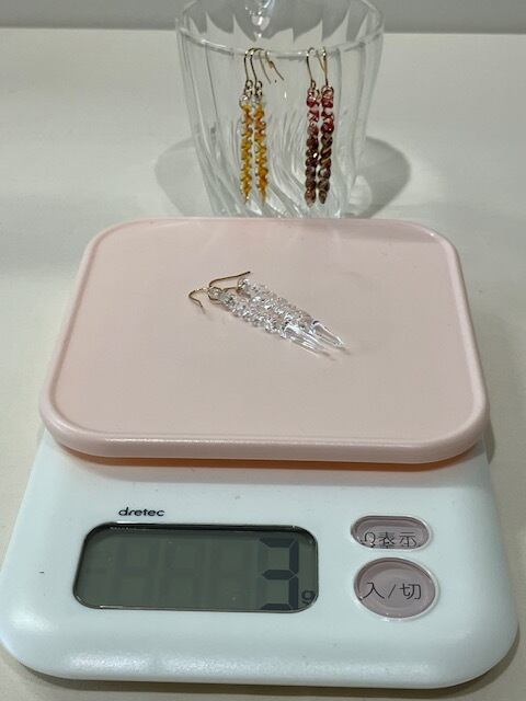 ①ガラスのアクセサリーにしては軽い 3~4gが多い